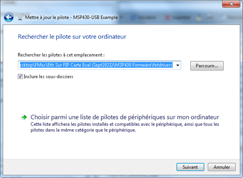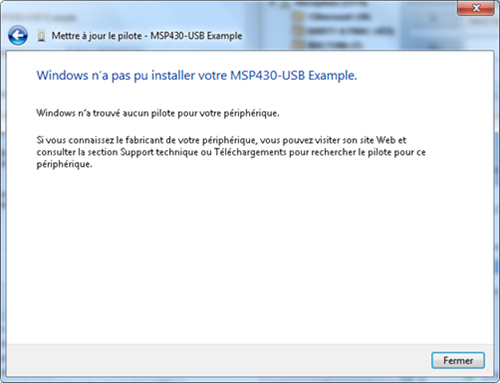 After installing the package Win7 refused to install the driver as I try to update the MSP430 driver, Win7 says : "No driver has been found on your computer."....