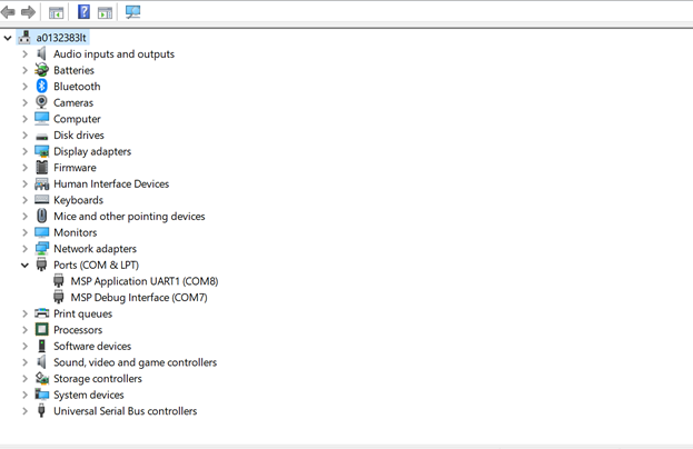 The board power led's are on. USB is plugged on the PC and the device management panel on Win7 see the MPS430 usb example board with (!).