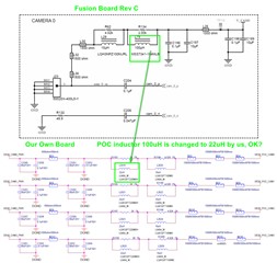 Can the 100uF POC inductor in DS90UB960 circuitry be changed to 22uH?