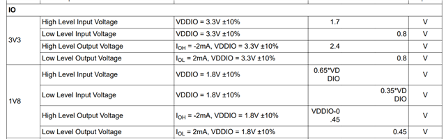My question is if this input level/threshold voltage is related to its VDDIO or AVD voltage? Can XI pin accept 3.3V crystal oscillator output while the device is powered from 1.8V VDDIO and AVD?