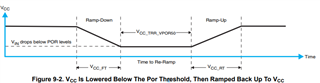 Given those successful trials, I believe that the POR circuit on the device is not working properly for this particular power-on condition, but it isn't clear that the power is violating the data sheet power-on specifications. Hoping you can validate that the Vcc waveform captured can cause a POR circuit disruption and/or clarify if there is a device specification we are violating with that Vcc waveform.