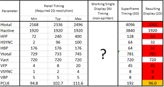 (ti941_addr, 0x01,0x08); //Disable DSI (ti941_addr,0x1E,0x01); //Select FPD-Link III Port 0 (ti941_addr,0x03,0x9A); //Enable I2C_PASSTHROUGH, FPD-Link III Port 0 (ti941_addr,0x17,0x9E); (ti941_addr,0x06,0x59); (ti941_addr,0x07,0x30); (ti941_addr,0x08,0x32); (ti941_addr,0x0E,0x03); (ti941_addr,0x0F,0x03); (ti941_addr,0x4F,0x8C); //Set DSI_CONTINUOUS_CLOCK, 4 lanes, DSI Port 0 (ti941_addr,0x5B,0x07); //Force Splitter mode (ti941_addr,0x56,0x80); //Enable Left/Right 3D processing to allow superframe splitting (ti941_addr,0x1E,0x02); //Select FPD-Link III Port 1 (ti941_addr,0x03,0x9A); //Enable I2C_PASSTHROUGH, FPD-Link III Port 1 (ti941_addr,0x17,0x9E); (ti941_addr,0x06,0x61); (ti941_addr,0x07,0x30); (ti941_addr,0x08,0x34); (ti941_addr,0x0E,0x03); (ti941_addr,0x0F,0x03); (ti941_addr,0x4F,0x8C); //Set DSI_CONTINUOUS_CLOCK, 4 lanes, DSI Port 1 (ti941_addr,0x5B,0x07); //Force Splitter mode (ti941_addr,0x56,0x80); //Enable Left/Right 3D processing to allow superframe splitting (ti941_addr,0x32,0x80); //Set the line size to 1280(LSB) (ti941_addr,0x33,0x07); //Set the line size to 1280 (MSB) (ti941_addr,0x1E,0x01); //Select FPD-Link III Port 1 (ti941_addr,0x36,0x00); //Set crop start X position to 0 (LSB) (ti941_addr,0x37,0x80); //Set crop start X position to 0 (MSB) and enable cropping (ti941_addr,0x38,0x7F); //Set crop stop X position to 1919 (LSB) (ti941_addr,0x39,0x07); //Set crop stop X position to 1919 (MSB) (ti941_addr,0x3A,0x00); //Set crop start Y position to 0 (LSB) (ti941_addr,0x3B,0x00); //Set crop start Y position to 0 (MSB) (ti941_addr,0x3C,0xCF); //Set crop stop Y position to 719 (LSB) (ti941_addr,0x3D,0x02); //Set crop stop Y position to 719 (MSB) (ti941_addr,0x1E,0x02); //Select FPD-Link III Port 1 (ti941_addr,0x36,0x00); //Set crop start X position to 0 (LSB) (ti941_addr,0x37,0x80); //Set crop start X position to 0 (MSB) and enable cropping (ti941_addr,0x38,0x7F); //Set crop stop X position to 1919 (LSB) (ti941_addr,0x39,0x07); //Set crop stop X position to 1919 (MSB) (ti941_addr,0x3A,0x00); //Set crop start Y position to 0 (LSB) (ti941_addr,0x3B,0x00); //Set crop start Y position to 0 (MSB) (ti941_addr,0x3C,0xcF); //Set crop stop Y position to 719 (LSB) (ti941_addr,0x3D,0x02); //Set crop stop Y position to 719 (MSB) (ti941_addr,0x40,0x04); //Select DSI Port 0 digital registers (ti941_addr,0x41,0x05); //Select DPHY_SKIP_TIMING register (ti941_addr,0x42,0x18); //Write TSKIP_CNT value for 300 MHz DSI clock frequency (ti941_addr,0x01,0x00); //Enable DSI (ti941_addr,0x30,0x01); (ti941_addr,0x1E,0x07);