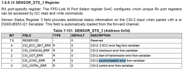 Thanks for the reply, and yes customer used the multiple VCIDs where all 4 cameras used the same ID connected to UB953, and then connected to UB960. Customer tried all 3 forwarding modes for UB960 including Best-Effort Round Robin CSI-2 Forwarding and synchronized CSI-2 forwarding, but their SoC is still reporting below error: