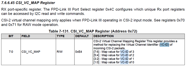 Also, can you please clarify what you said earlier: "multiple VCIDs where all 4 cameras used the same ID connected to UB953."