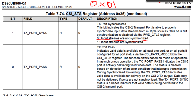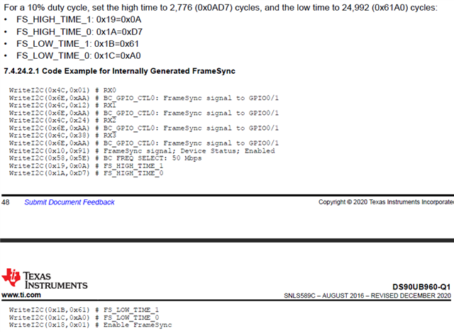 2. UB960 0x37 register read back is 0x07. UB960 0x54 register read back is 0x00.
