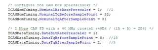 The external crystal oscillator is 20Mhz. Data rate set to 500kbps and the message rate set to 1Mbps the communication is normal.