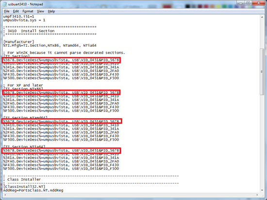 But after modifying the config file to custom PID and VID and string descriptors the device gets detected as TUSB3410 device and shows default descriptors in the driver details.