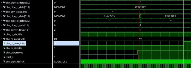 Reset is normal. After PHY reset, PHY_STATUS got asserted and then deasserted which is as expected. TX_LPBK is asserted, but no one clock PHY_STATUS.