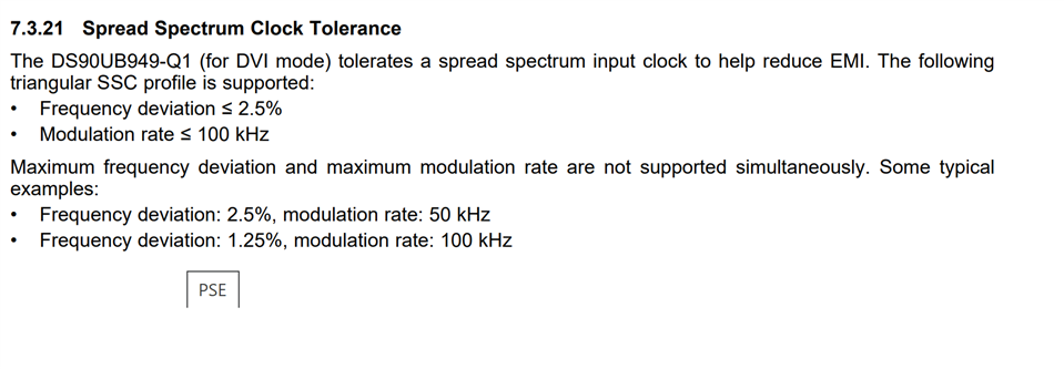 we are using DS90UB949 in the design, I am aware there is SSC clock in the DS90UB949. Our processor has some default SSC settings. I want to know, Is it within the limit or not?