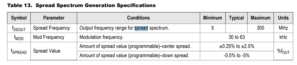 Fmod : 0.03MHz / mode = downspread (-3%)