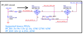 We are currently developing a TBT3 Titan-Ridge DD project, and the PD chip used is TPS95683B used on the reference version. I am not sure about the configuration of FW. Attached is our schematic diagram for your reference.