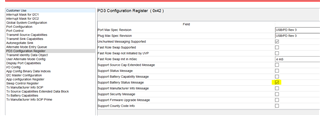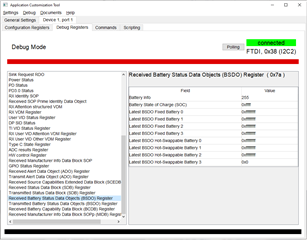 When running the TPS6598x Application Customization Tool (version 6.1.1 or version 6.1.3), in debug mode and under the Debug Register tab, there are two registers called; Received Battery Status Data Objects (BSDO) Register (0x7a) and Transmitted Battery Status Data Objects (BSDO) Register (0x7b). Does anyone have any more understanding regarding these registers? There is a field in these registers named Battery State of Charge (SOC), and I am wondering how that works.