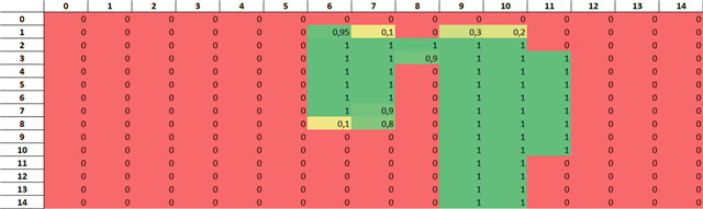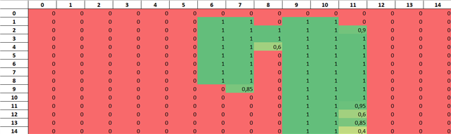 These would probably be a stable connection for a 15m cable, but doesn't pass the criteria from the Margin Analysis Application Report, because of strobe position 8.