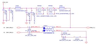 4. For the high-speed path it looks like you are using a CMC with a coax connection which I would recommend against. Also the negative side termination doesn't seem quite right. We recommend 49.9Ohm resistors.