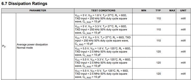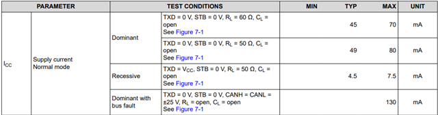 We would like to calculate the loss of TCAN1044 , (1)Normal mode (2) Low power standby mode (3) Max power loss !