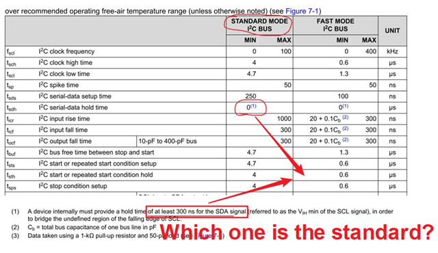 This comes from I2C standard, our I2C device isn't affected by this timing spec. The latest version of the spec still calls for 0 without a call out on a 300ns on SDA. It only requires that SCL falls below 30% of VCC before SDA enters the 30-70 or 70-30 range.