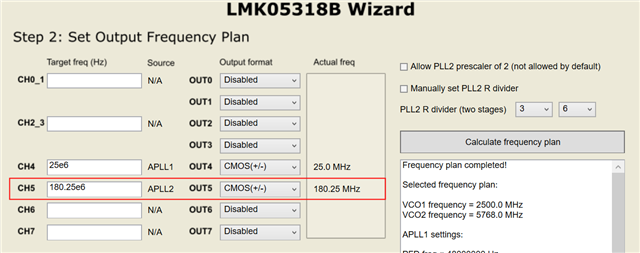 XO =24.000 MHz, CH4 = 25 MHz, CH5 = 180.25 MHz.tcs