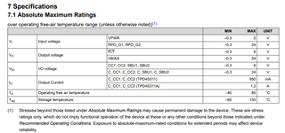 Apologies for the delayed response. For the TPD4S311 Tj is within the range of -40C to 85C with max Vconn current of 400mA. The 'A 'variant for this device can go up to 105C and max Vconn current of 600mA.