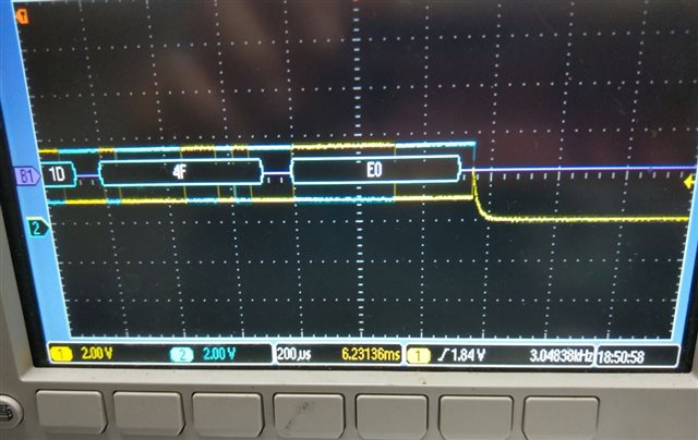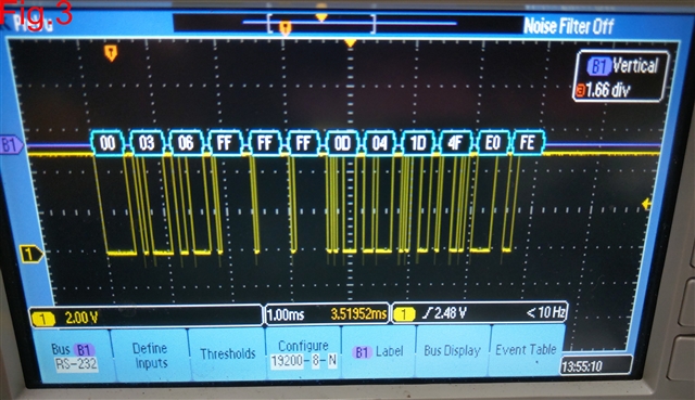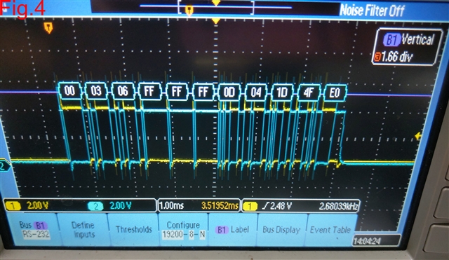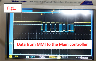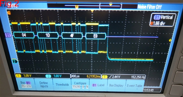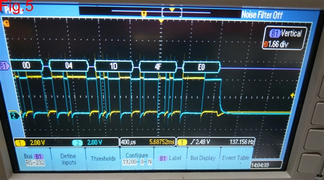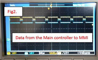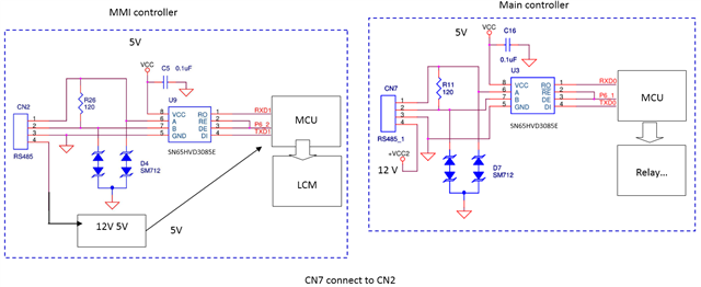 The failure mode happened on the main control board is that the 485 IC can receive the data correctly, but the driver function is abnormal. No data or abnormal data(Fig.2) is on the RS485 bus when the IC is at driver mode. We think the RS485 ICs on the main controller are failed actually. Those curves are DA to DCG, DB to DCG.