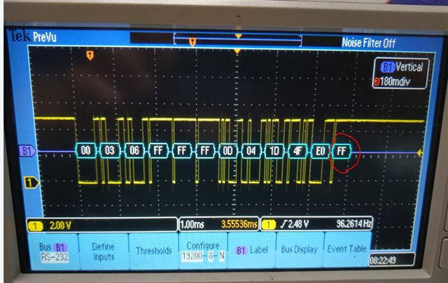 The failure mode happened on the MMI controller is that the MMI controller can not receive the data correctly. We find the MMI controller can receive data, but there is one byte(0xFF) more or one byte less at the end. For example, the correct count is 207 bytes, but the MMI controller will receive 206 or 208 bytes. When we remove the terminal resistor (120 ohm), the MMI controller can receive the data correctly. The distance between two controller is about 1.5m. Now our one question is that why the resistor affects the receive function on the MMI controller? Is the RS485 IC on the MMI normally?