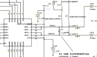I DO have an optional component placed between the two output lines(C33 which is currently not populated). There are also serial 0 ohm resistors (R14 and R36) on each of the output lines that lead to the TOSA device.