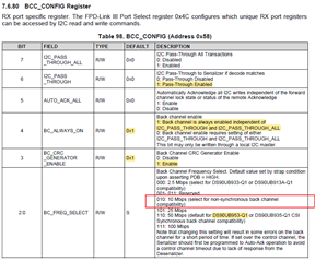 Another project, PROJECT B, can only work through BC_FREQ_SELECT configuration of 010: 10 Mbps (select for non-synchronous back channel