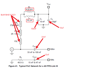 The link between is coax and fpdlink's on the port0 of 954. The POC is stable and confirmed from the oscilloscope.