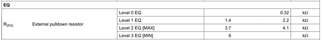 According from datasheet description, the EQ pull-down resistor needs to meet the following range.