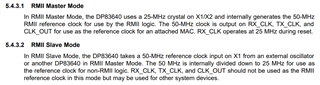 The confusion here is regarding RMII master mode vs RMII slave mode. Each will have their own unique clock configuration. Please see the following from the datasheet.
