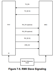 In RMII slave mode, both the PHY and the MAC will operate off a 50MHz oscillator.
