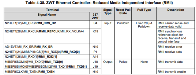For reference, below is the rmii-related timming in the rm46l852 chipset specification. In the schematic, pin K19 of the RM46L852 is identified as the RMII REF Clock. If following your guide how should I handle the RMII REF Clock input on the RM46L852?