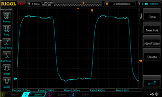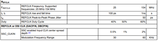 My custom pcb has a 27Mhz oscillator directly connected to the REFCLK input. Because the datasheet of the display specifies a 51.21 Mhz Clock for the display i deemed it okay to use that and use the times two multiplier in the ic. The clock can be between 44,9 and 63 Mhz according to the datasheed of the display.