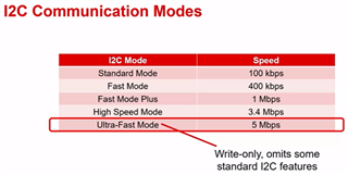It says that Ultra-fast mode supports write only and omits some standard I2C feature.