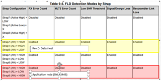FLD detection modes by strap are different as shown in the table below.