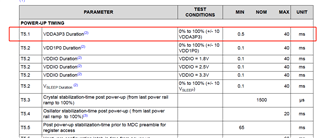 (1) for the VDDA power up timing, the minimum value of T5.1 is 0.5ms,however we measured it 0.039ms,so what risk will this cause?