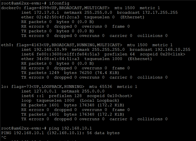 In AM62x device run command : ping 192.168.10.1