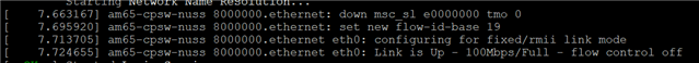 [ 0.000000] Booting Linux on physical CPU 0x0000000000 [0x410fd034] [ 0.000000] Linux version 5.10.153-g3eee621d16 (root@albert-6TB) (aarch64-none-linux-gnu-gcc (GNU Toolchain for the A-profile Architecture 9.2-2019.12 (arm-9.10)) 9.2.1 20191025, GNU ld (GNU Toolchain for the A-profile Architecture 9.2-2019.12 (arm-9.10)) 2.33.1.20191209) #8 SMP PREEMPT Fri Apr 21 00:45:58 EDT 2023 [ 0.000000] Machine model: Texas Instruments AM625 SK [ 0.000000] earlycon: ns16550a0 at MMIO32 0x0000000002800000 (options '') [ 0.000000] printk: bootconsole [ns16550a0] enabled [ 0.000000] efi: UEFI not found. [ 0.000000] Reserved memory: created DMA memory pool at 0x000000009c800000, size 3 MiB [ 0.000000] OF: reserved mem: initialized node ipc-memories@9c800000, compatible id shared-dma-pool [ 0.000000] Reserved memory: created DMA memory pool at 0x000000009cb00000, size 1 MiB [ 0.000000] OF: reserved mem: initialized node m4f-dma-memory@9cb00000, compatible id shared-dma-pool [ 0.000000] Reserved memory: created DMA memory pool at 0x000000009cc00000, size 14 MiB [ 0.000000] OF: reserved mem: initialized node m4f-memory@9cc00000, compatible id shared-dma-pool [ 0.000000] Reserved memory: created DMA memory pool at 0x000000009da00000, size 1 MiB [ 0.000000] OF: reserved mem: initialized node r5f-dma-memory@9da00000, compatible id shared-dma-pool [ 0.000000] Reserved memory: created DMA memory pool at 0x000000009db00000, size 12 MiB [ 0.000000] OF: reserved mem: initialized node r5f-memory@9db00000, compatible id shared-dma-pool [ 0.000000] Zone ranges: [ 0.000000] DMA [mem 0x0000000080000000-0x00000000ffffffff] [ 0.000000] DMA32 empty [ 0.000000] Normal empty [ 0.000000] Movable zone start for each node [ 0.000000] Early memory node ranges [ 0.000000] node 0: [mem 0x0000000080000000-0x000000009c7fffff] [ 0.000000] node 0: [mem 0x000000009c800000-0x000000009e6fffff] [ 0.000000] node 0: [mem 0x000000009e700000-0x000000009e77ffff] [ 0.000000] node 0: [mem 0x000000009e780000-0x000000009fffffff] [ 0.000000] node 0: [mem 0x00000000a0000000-0x00000000ffffffff] [ 0.000000] Initmem setup node 0 [mem 0x0000000080000000-0x00000000ffffffff] [ 0.000000] On node 0 totalpages: 524288 [ 0.000000] DMA zone: 8192 pages used for memmap [ 0.000000] DMA zone: 0 pages reserved [ 0.000000] DMA zone: 524288 pages, LIFO batch:63 [ 0.000000] cma: Reserved 512 MiB at 0x00000000dd000000 [ 0.000000] psci: probing for conduit method from DT. [ 0.000000] psci: PSCIv1.1 detected in firmware. [ 0.000000] psci: Using standard PSCI v0.2 function IDs [ 0.000000] psci: Trusted OS migration not required [ 0.000000] psci: SMC Calling Convention v1.2 [ 0.000000] percpu: Embedded 22 pages/cpu s50008 r8192 d31912 u90112 [ 0.000000] pcpu-alloc: s50008 r8192 d31912 u90112 alloc=22*4096 [ 0.000000] pcpu-alloc: [0] 0 [0] 1 [0] 2 [0] 3 [ 0.000000] Detected VIPT I-cache on CPU0 [ 0.000000] CPU features: detected: ARM erratum 845719 [ 0.000000] CPU features: detected: GIC system register CPU interface [ 0.000000] Built 1 zonelists, mobility grouping on. Total pages: 516096 [ 0.000000] Kernel command line: console=ttyS2,115200n8 earlycon=ns16550a,mmio32,0x02800000 root=PARTUUID=609e3af9-02 rw rootfstype=ext4 rootwait [ 0.000000] Dentry cache hash table entries: 262144 (order: 9, 2097152 bytes, linear) [ 0.000000] Inode-cache hash table entries: 131072 (order: 8, 1048576 bytes, linear) [ 0.000000] mem auto-init: stack:off, heap alloc:off, heap free:off [ 0.000000] Memory: 1456392K/2097152K available (10880K kernel code, 1148K rwdata, 4232K rodata, 1792K init, 432K bss, 116472K reserved, 524288K cma-reserved) [ 0.000000] SLUB: HWalign=64, Order=0-3, MinObjects=0, CPUs=4, Nodes=1 [ 0.000000] rcu: Preemptible hierarchical RCU implementation. [ 0.000000] rcu: RCU event tracing is enabled. [ 0.000000] rcu: RCU restricting CPUs from NR_CPUS=256 to nr_cpu_ids=4. [ 0.000000] Trampoline variant of Tasks RCU enabled. [ 0.000000] rcu: RCU calculated value of scheduler-enlistment delay is 25 jiffies. [ 0.000000] rcu: Adjusting geometry for rcu_fanout_leaf=16, nr_cpu_ids=4 [ 0.000000] NR_IRQS: 64, nr_irqs: 64, preallocated irqs: 0 [ 0.000000] GICv3: GIC: Using split EOI/Deactivate mode [ 0.000000] GICv3: 256 SPIs implemented [ 0.000000] GICv3: 0 Extended SPIs implemented [ 0.000000] GICv3: Distributor has no Range Selector support [ 0.000000] GICv3: 16 PPIs implemented [ 0.000000] GICv3: CPU0: found redistributor 0 region 0:0x0000000001880000 [ 0.000000] ITS [mem 0x01820000-0x0182ffff] [ 0.000000] GIC: enabling workaround for ITS: Socionext Synquacer pre-ITS [ 0.000000] ITS@0x0000000001820000: Devices Table too large, reduce ids 20->19 [ 0.000000] ITS@0x0000000001820000: allocated 524288 Devices @80800000 (flat, esz 8, psz 64K, shr 0) [ 0.000000] ITS: using cache flushing for cmd queue [ 0.000000] GICv3: using LPI property table @0x0000000080030000 [ 0.000000] GIC: using cache flushing for LPI property table [ 0.000000] GICv3: CPU0: using allocated LPI pending table @0x0000000080040000 [ 0.000000] arch_timer: cp15 timer(s) running at 200.00MHz (phys). [ 0.000000] clocksource: arch_sys_counter: mask: 0xffffffffffffff max_cycles: 0x2e2049d3e8, max_idle_ns: 440795210634 ns [ 0.000004] sched_clock: 56 bits at 200MHz, resolution 5ns, wraps every 4398046511102ns [ 0.008514] Console: colour dummy device 80x25 [ 0.013103] Calibrating delay loop (skipped), value calculated using timer frequency.. 400.00 BogoMIPS (lpj=800000) [ 0.023784] pid_max: default: 32768 minimum: 301 [ 0.028590] LSM: Security Framework initializing [ 0.033377] Mount-cache hash table entries: 4096 (order: 3, 32768 bytes, linear) [ 0.040958] Mountpoint-cache hash table entries: 4096 (order: 3, 32768 bytes, linear) [ 0.050723] rcu: Hierarchical SRCU implementation. [ 0.055909] Platform MSI: msi-controller@1820000 domain created [ 0.062200] PCI/MSI: /bus@f0000/interrupt-controller@1800000/msi-controller@1820000 domain created [ 0.071443] EFI services will not be available. [ 0.076339] smp: Bringing up seconda