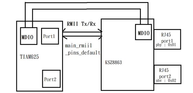 (3) Plug in ethernet cable to connect eth1 and network hub . (AM62x eth1 ==> ksz8863 port2 : phy id : 0x02) . ping 8.8.8.8 is failed .