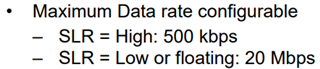 So, when SLR=Low, maximum 20Mbps is achievable. When SLR=High, then the date rate will be limited at 500kbps max even if the actual communication speed is 1Mbps. Is my understanding correct?
