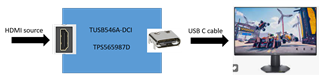 we're currently working to build or own HDMI to USB C (with display port) converter. In particular, we have a HDMI source which will be connected to the converter and a monitor that will be connected to the converter through a USB-C port.