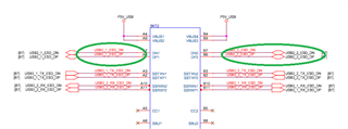 For type-C, you can not connect two USB2 ports on one C- connector, normally people shorts DP1/DP2, DM1/DM2 on connector.