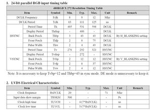 The connected display has 480x272 pixels resolution and the display parameters showed in the datasheet are: