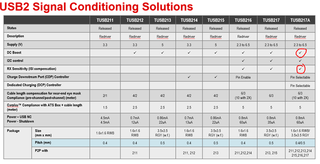 I notice TUSB216 has DC boost and RX sensitivity compare to TUSB211,