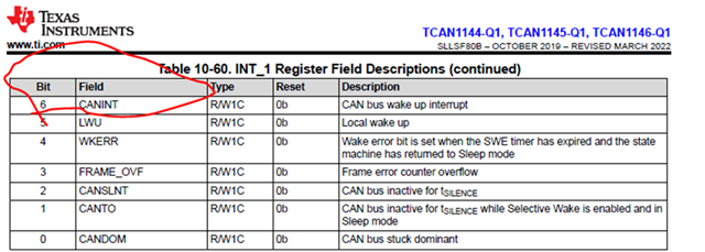 Customer is using CANoe to send CAN NM message every 40ms, and read CANINT bit through SPI every 5ms, they found the bit is never set. So they have below questions: