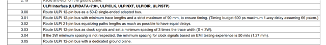 I have looked at the document "SLLU149E–June 2011–Revised February 2016" Chapter 5 particularly about USB connections. The sections 5.3 and 5.4 describe high-speed differential routing and supper-speed differential routing respectively. I don't find any information about routing guideline for the signals between MCU and USB Transceiver. The ULPI (8 bit 60 MHz) and PIPE (16 bit 250 MHz). Do we have any length matching requirements for ULPI and PIPE signals ?