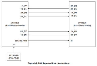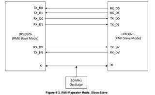 We have an ethernet card design that uses 2x DP83822IF configured in MII to accomplish MDI copper to MDI Fiber media conversion from a PCIe MAC.