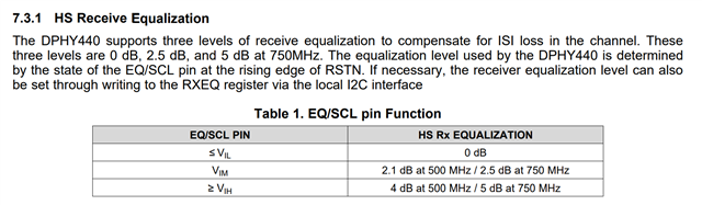 On the datasheet, this device has receive equailzer, which can be enabled up to 4dB at 500MHz.