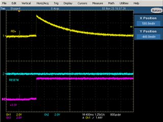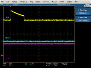 [Waveform] ch1: RD_P(SFP Connector 13pin), ch2: DP83822HF's Reset, ch3: +3.3V