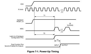 Currently, the PHY uses 3 supply modes (1.0V/2.5V/3.3V). The power-on reset timing diagram is as follows: