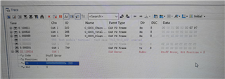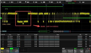 Zoom in: we can see the error frame detected in red box, 12 bit dominant state.